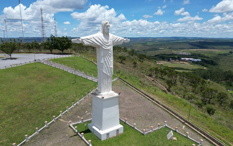 Serra do Cruzeiro is the highest point surrounding the municipality. It is made up of a long group of hills of rare beauty, providing a contour of ups and downs, and is widely used for motocross trails and paragliding free flight ramps. In 1994, a statue of Christ the Redeemer was erected at the highest point of the mountain, and right in front of the city, made up of 100 pieces assembled by hand. The complex also has an artificial grotto, with life-size images, representing the birth of the baby Jesus and the coming of the 3 wise men, being the place where the traditional revelry of kings takes place.